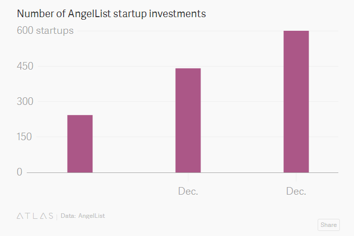 With the internet finally invading the clubby, offline world of venture capital, the startup investment and network site AngelList has served as the barbarian at the gates. The platform’s goal is to enable thousands of angel investors to place money in multiple startups without screening them one by one. It has turned highly skilled operators into prolific investors by giving them legal, administrative and operational support, as well as an efficient way to pool investors and close deals. Today, AngelList has closed well over 1,800 investments worth $685 million. It runs 60 Angel Funds as well as more than 150 active “syndicates“—venture-capital funds that make a single investment by joining with multiple institutional investors or sophisticated angels.